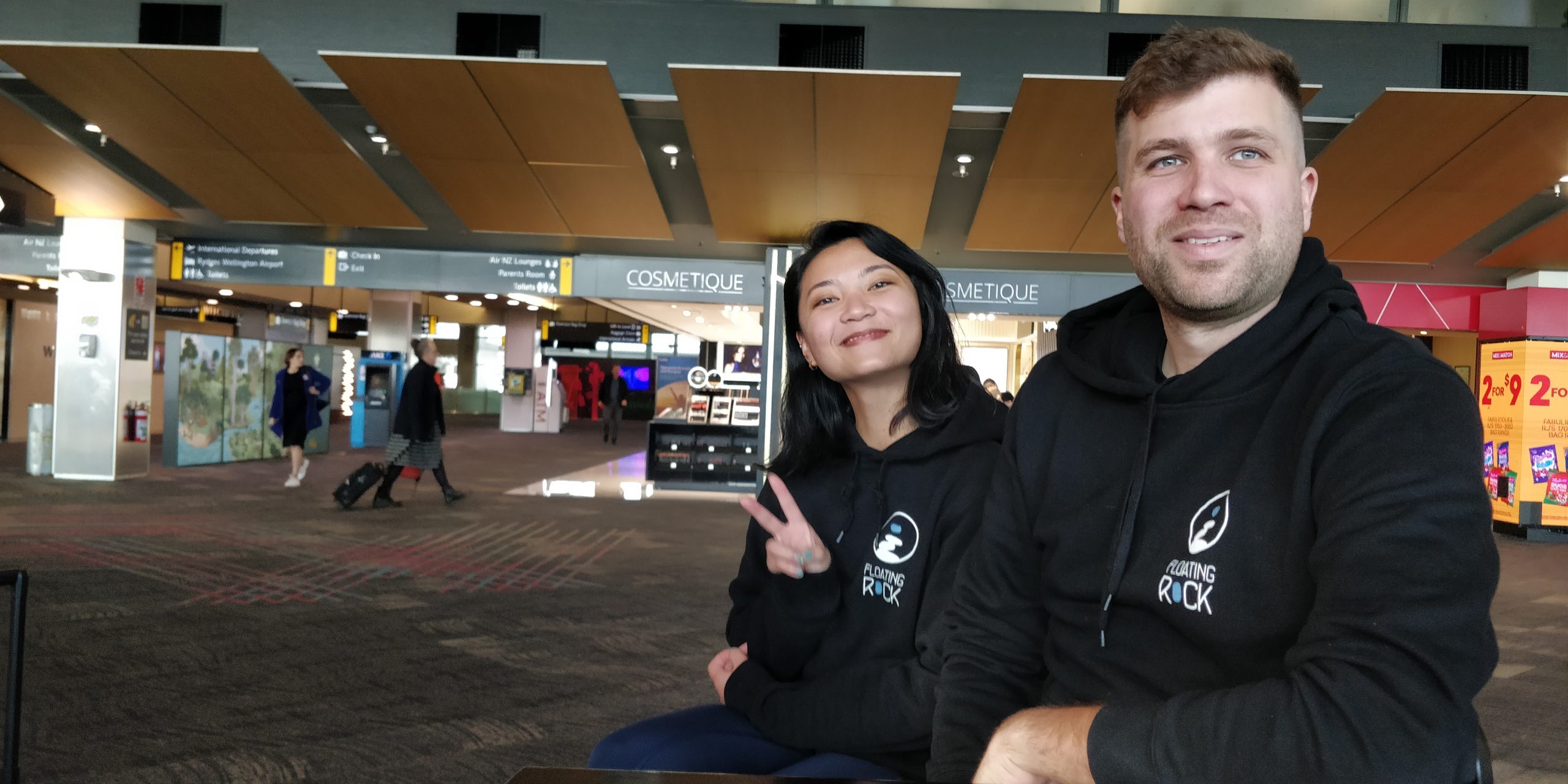 RNZ literally Stephanie and Garrick just before catching a flight to Annecy to proudly represent Floating Rock, New Zealand and showcase the latest and greatest sneak peek of our first original IP to eyes who are keen to see something truly unique - Kyoryu.